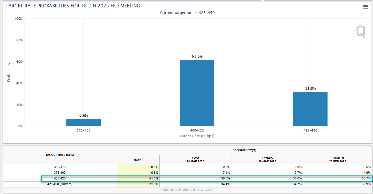 So while it’s still a tight liquidity environment, we’re seeing signs of a gradual easing. Rates are still in the 4.25% to 4.5% range, and the odds of a June rate cut have increased—but a May cut is off table for now.