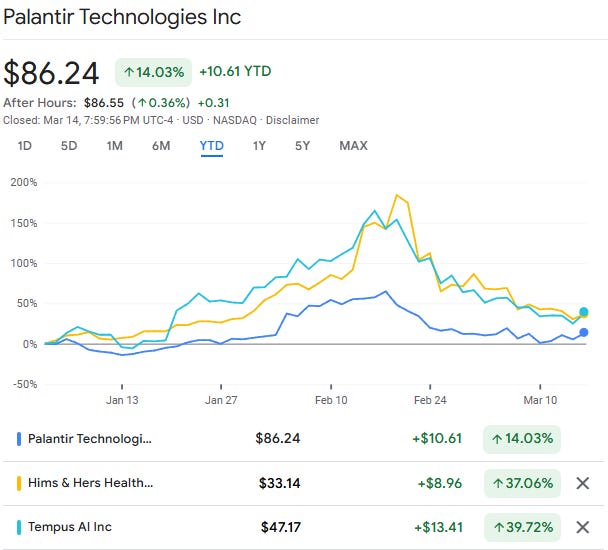 PLTR is not far from its all-time highs and is still green year to date