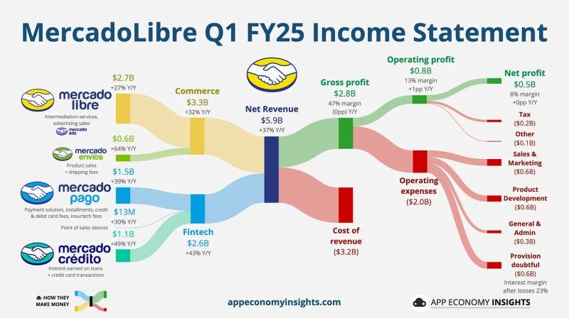 What makes Latin America such an attractive place for investment for MELI 0.00%↑ NU 0.00%↑? And not just Latin America, this applies to other emerging markets as well: Southeast Asia GRAB 0.00%↑ SE 0.00%↑ , Eastern Europe, parts of Africa DLO 0.00%↑ JMIA 0.00%↑ . The opportunity is global.