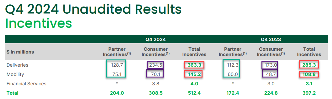 While Grab reported increased revenue in both deliveries and mobility, there’s a growing concern that GMV is outpacing revenue growth. This raises questions about whether Grab is sacrificing profitability for market share. Since revenue is recognized as GMV minus costs and incentives, the widening gap suggests that higher customer incentives are eating into top-line growth. This was mostly in Customer Incentives increasing 37% YoY.
