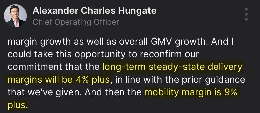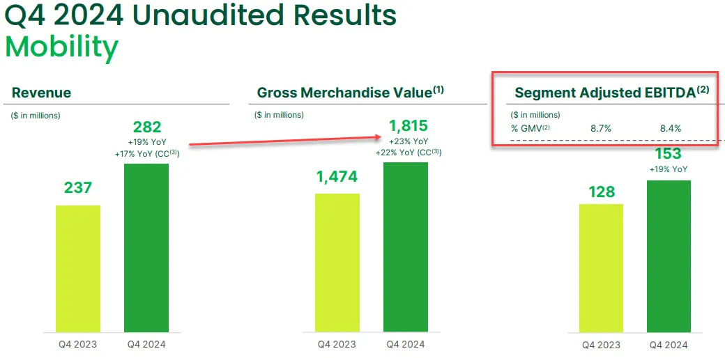 However, Mobility Adj. EBITDA as a % of GMV compressed due to slower growth in Revenue vs GMV. I will address this later on.