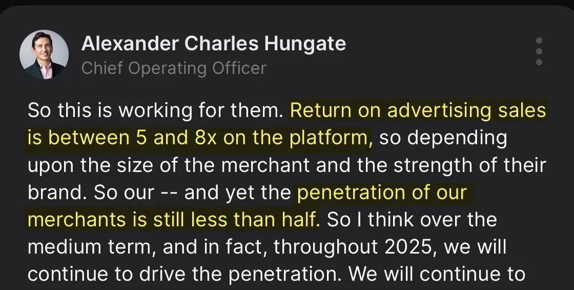 Ad revenue as a percentage of Deliveries GMV hit 1.7% ($216M in FY24)