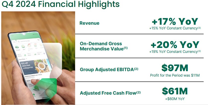 Grab Holdings Limited released its FY24 Q4 earnings, with growth across all three segments, improved Adjusted EBIDTA profitability, and a positive outlook for FY25. The company continues to strengthen its position as Southeast Asia’s leading super app, with strong performance in mobility, deliveries, and financial services. However, the market expected more… were expectations too high? Or is the company thesis breaking?