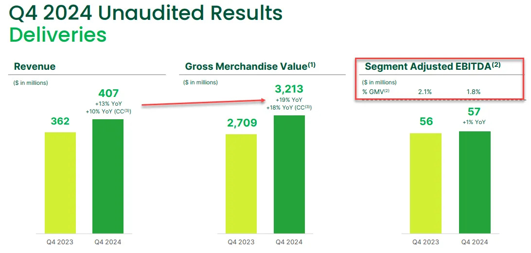 Grab’s Q4 results were a bit of a mixed bag. Revenue came in strong, beating estimates and backed by solid guidance, showing the company is still growing at a healthy pace. They also posted another profitable quarter, surpassing EPS expectations, which is always a positive sign. But it wasn’t all smooth sailing—adjusted EBITDA missed analyst estimates, though it did come in above the company’s own guidance. All in all, a solid quarter that shows progress, but with some lingering challenges around profitability.