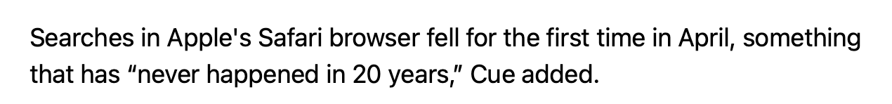 Apple executive Eddy Cue recently testified that Safari searches on iPhones have declined for the first time in years. That’s a significant development, especially considering Google pays Apple billions to remain the default search engine.