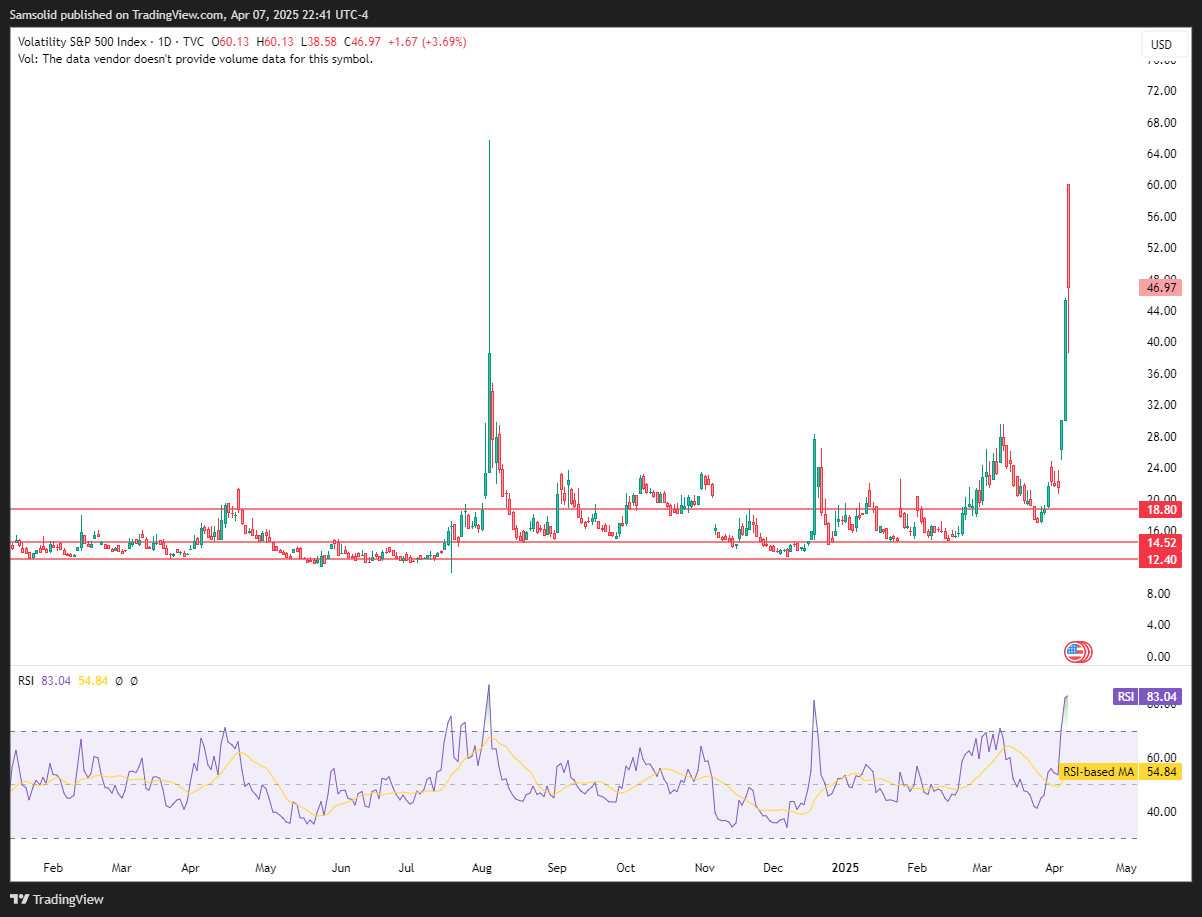 The VIX was almost 60 in the morning, triggering wild swings. It reminded me of March 2020 when the VIX hit 70 during the COVID crash.