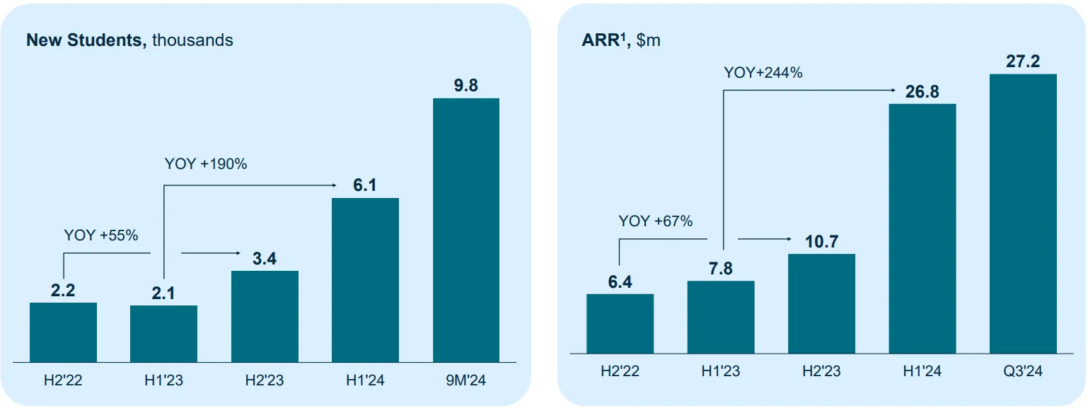 They’re targeting a $95B TAM by 2030, growing at +26% CAGR. Beyond B2C, they’re building out a strong B2B offering as more companies invest in reskilling their workforce, especially with the rise of AI-driven disruption. They’re continuously expanding their course catalog—recently adding Cybersecurity and planning to roll out a UI/UX Designer program soon. Plus, they’re integrating AI-powered tools to improve learning outcomes and reduce costs, positioning themselves as a leader in tech education both for consumers and corporate clients.