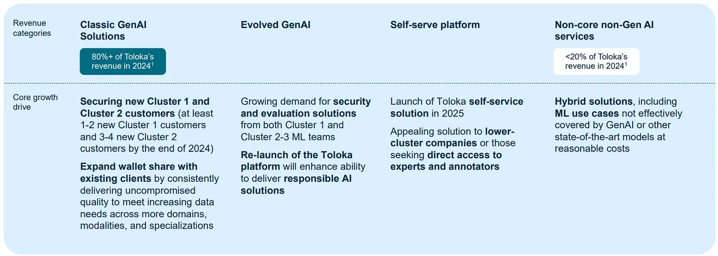 Toloka is Nebius’ crowdsourcing platform built specifically for AI and ML tasks. Think of it like Fiverr, but instead of freelancers doing logos or gigs, it's all focused on things like data labeling, RLHF, model evaluation, and human feedback loops. Over 80% of their revenue comes directly from GenAI clients—foundational model builders, LLM developers, the core players in AI.