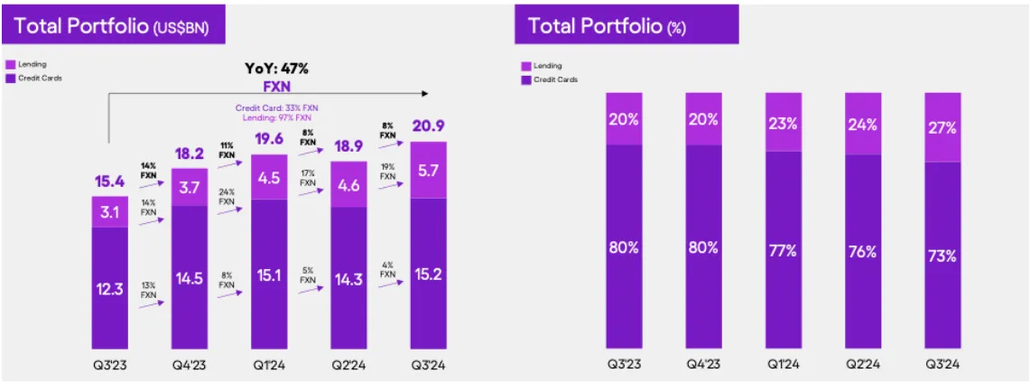 Overall, the bank has experienced rapid growth, reaching 110 million customers as of September 2024, up from 41.1 million in Q4 2021. Its credit portfolio, primarily consisting of credit card loans, is nearing $21 billion, reflecting a 47% year-over-year increase. Personal loans make up nearly a quarter of its total loan portfolio, showcasing its expanding financial services.