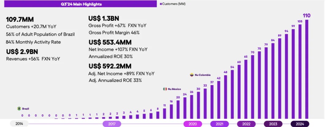NuBank really seems to be setting itself up for a big 2025. With its solid customer base in Brazil and the expansion into Mexico and Colombia, it’s definitely positioning itself well for further growth. The increase in customers, especially in untapped markets, shows how much potential there is. Curious to see what the next parts of the series reveal!