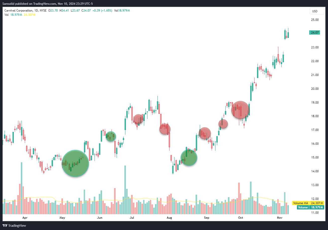 Let me share a recent experience. It involved a trade in Cruise Lines, brought to my attention by someone I highly respect. Just a few months ago, interest rates were at their peak, and the market was heavily focused on mega-cap stocks. There was widespread fear and an expectation that interest rates would remain elevated for a long time. As a result, high-debt companies were viewed as poor investments due to the high-interest repayments. During COVID, many cruise lines took on debt to continue operations, and most even cut their dividends. This presented an opportunity to leverage up. Conviction was high, though largely borrowed. Due diligence is crucial for me; it helps me stay committed to a position despite radical price movements.